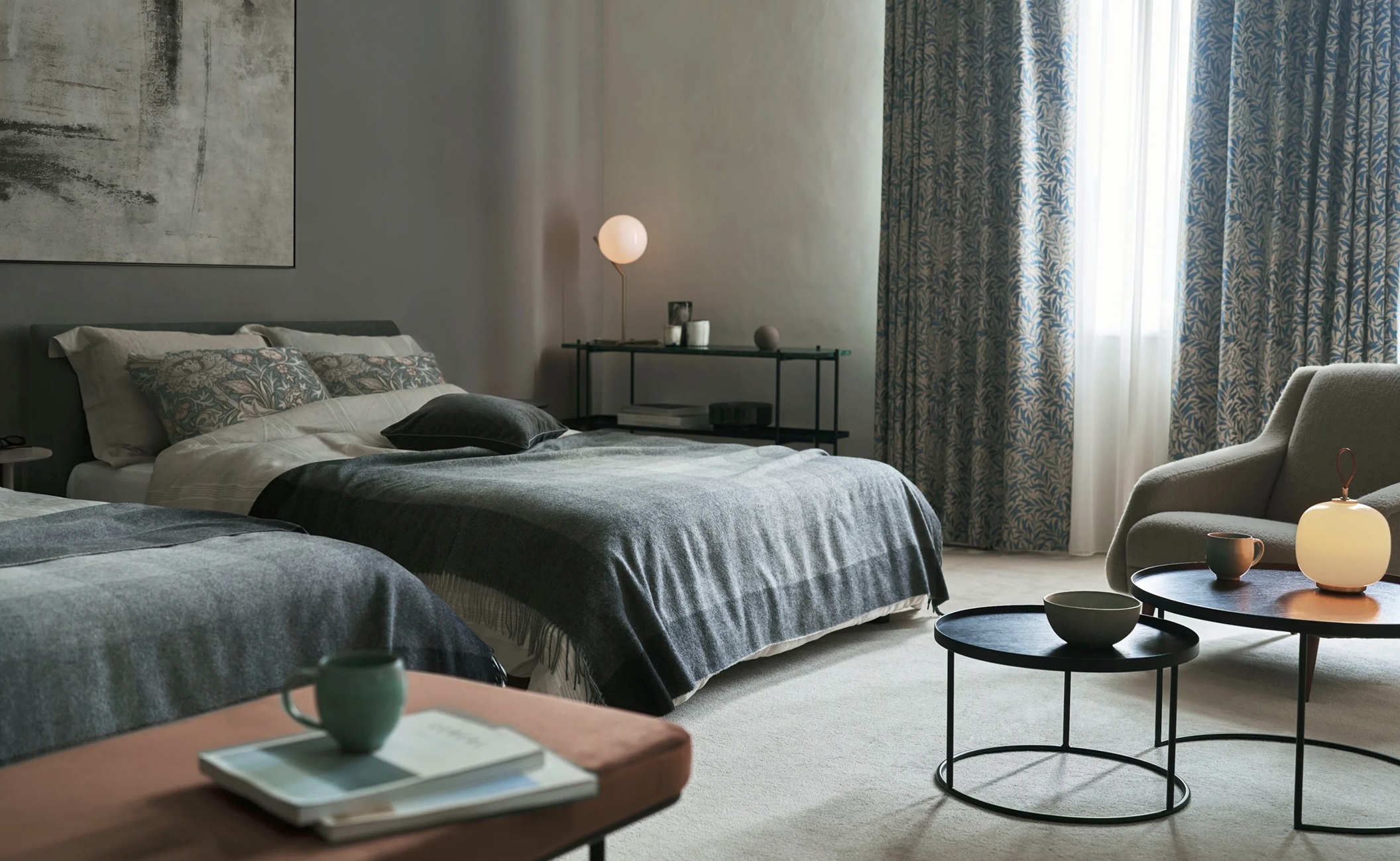 モリスの人気柄、ウイローボウの遮光版です。織物の表情はそのままに、柄や色、織り方にアレンジを加え、遮光2級を実現しました。モダンなカラーはリビング、寝室など、幅広くご提案いただけます。