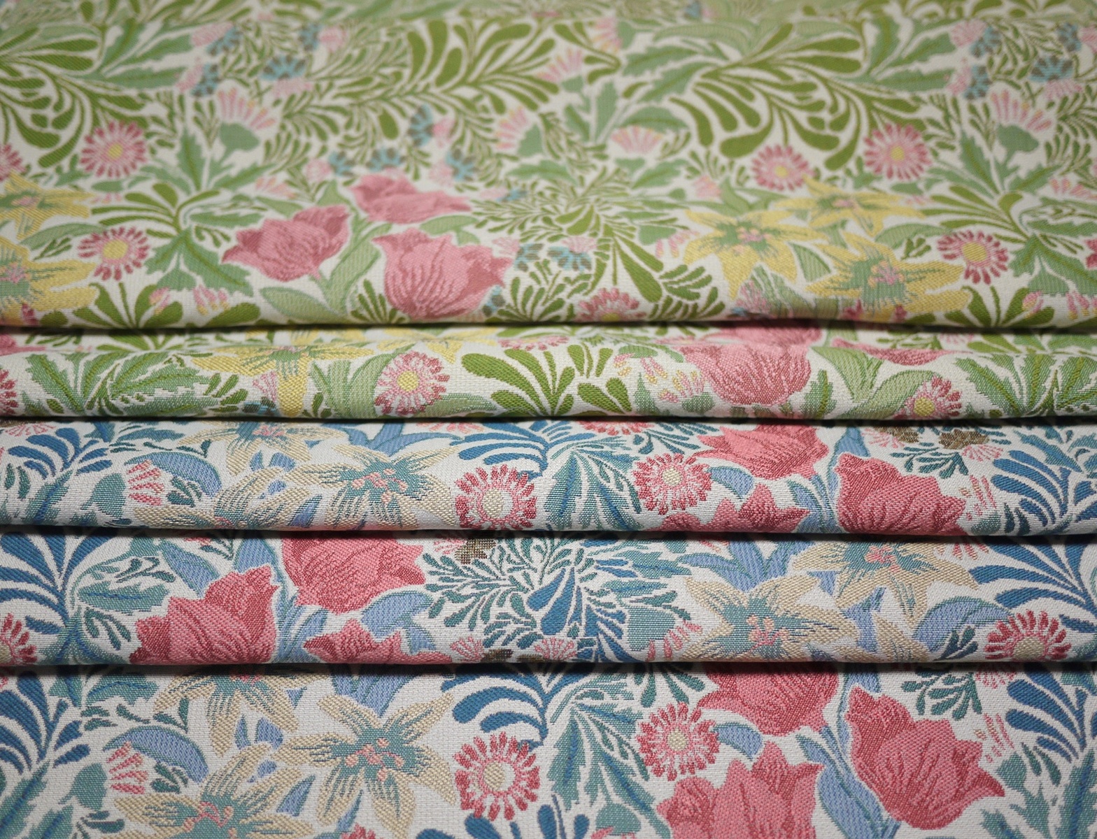 川島織物セルコンの高度な製織技術による、緻密で高品質な日本製ウィリアムモリスの大きな生地サンプルを多数ご用意しています。