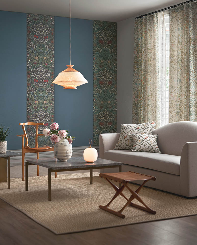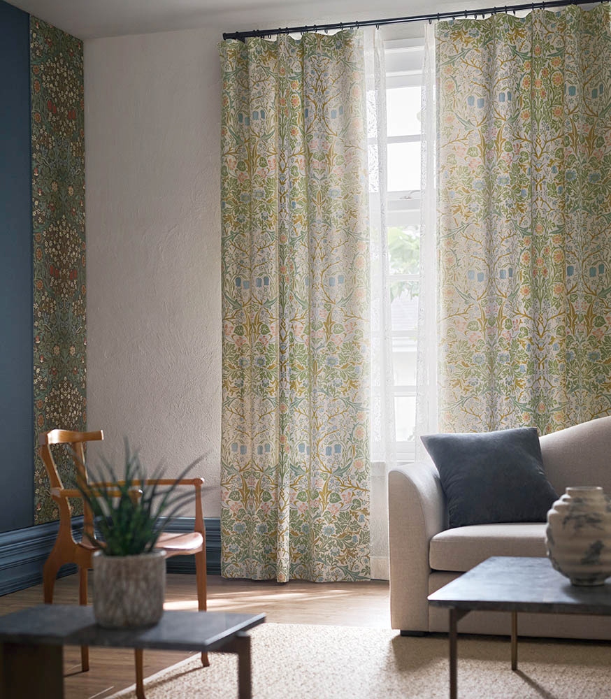 川島織物セルコンの高度な製織技術による、緻密で高品質な日本製ウィリアムモリスの大きな生地サンプルを多数ご用意しています。